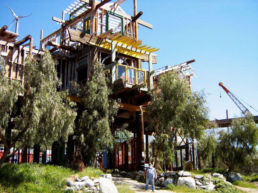 After spending 30 years building, from telephone poles and I-beams, his whimsical but sturdy "Phonehenge West" near Acton, Alan K. Fahey was arrested for not having sufficient permits. He and his family were evicted and the animals were impounded this summer (picture above). In other cases the residents were cited due to anonymous complaints supposedly from neighbors, about their "interference" and "offensiveness" -- they remain nameless and indeed are few and far between; in one case no nearer than 10 miles in any direction. All Native Americans, as well as many of the first '49ers, know what the real Code of the West is -- use any tactic or level of violence to muscle people off their land, no matter how dry, remote or forlorn it is.